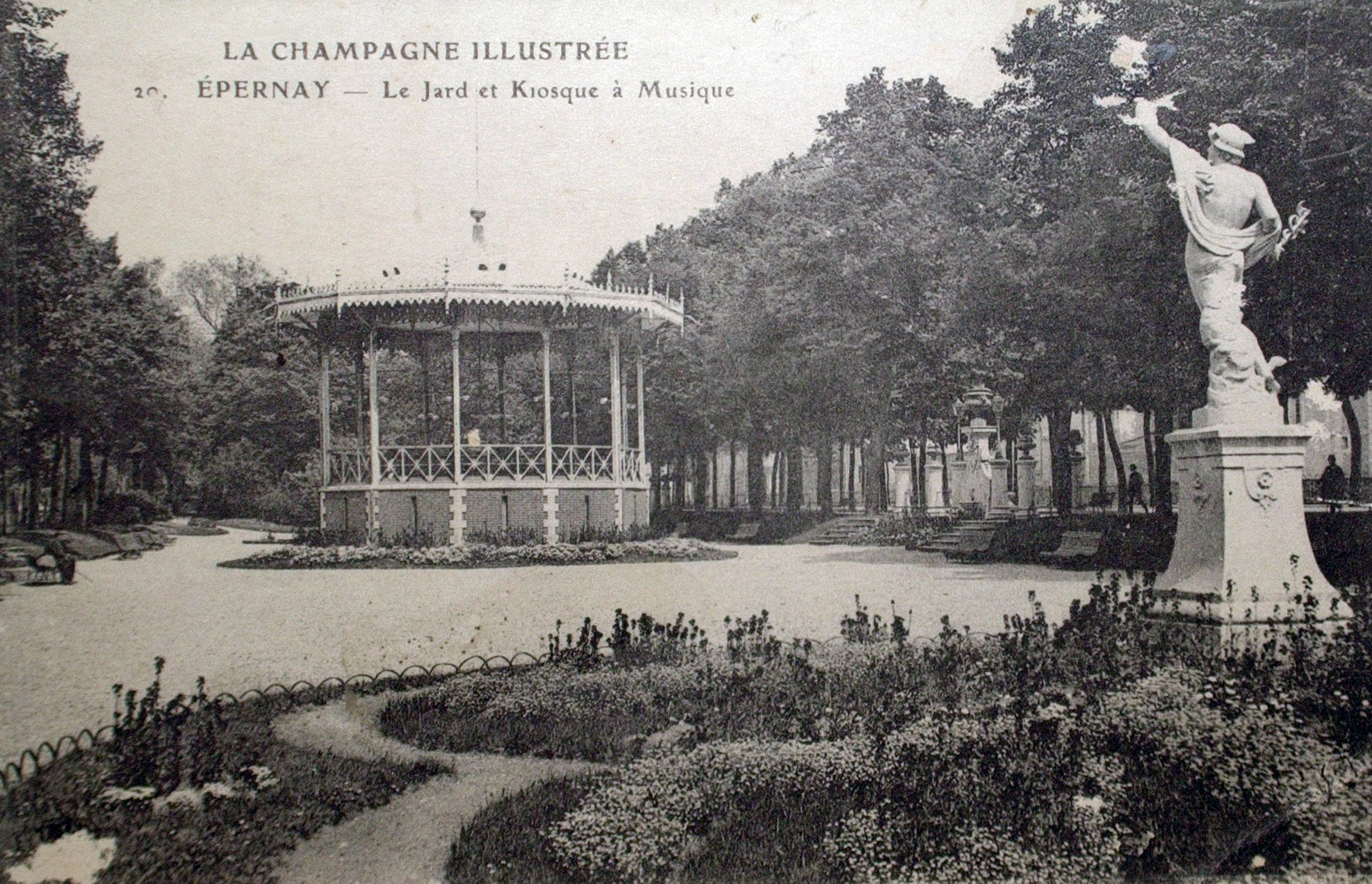 Le kiosque à musique du Jard et la Statue de la paix à Epernay